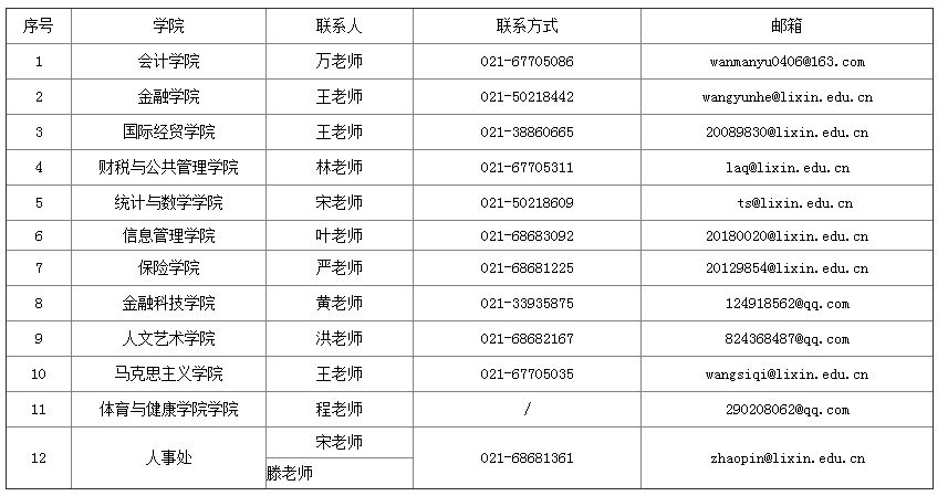 四、相關(guān)學(xué)院及人事處聯(lián)系方式