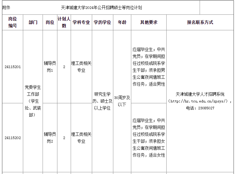 附件:天津城建大學2024年公開招聘碩士等崗位計劃