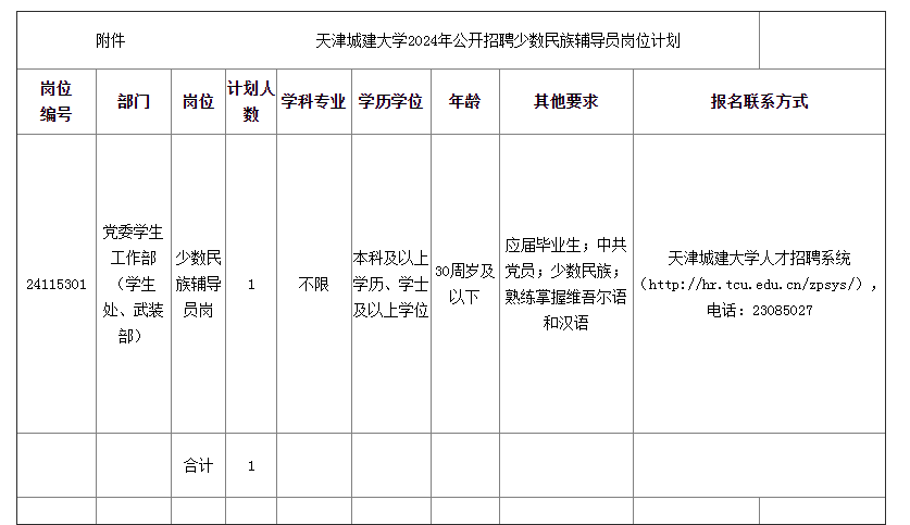附件:天津城建大學(xué)2024年公開(kāi)招聘少數(shù)民族輔導(dǎo)員崗位計(jì)劃