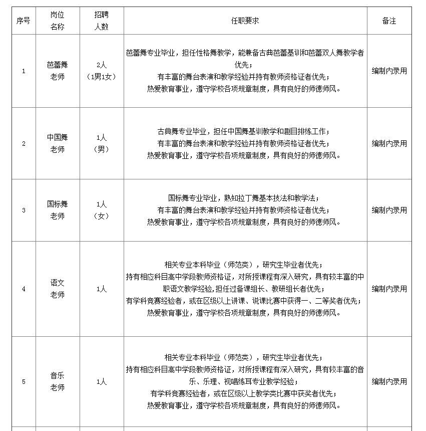 一、招聘崗位和職位數(shù):上海戲劇學院附屬舞蹈學校各崗位共7人,詳見下表。