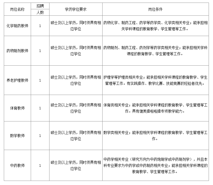 4、有高校教學(xué)工作經(jīng)驗(yàn)或者醫(yī)藥行業(yè)企業(yè)工作背景者同等條件下可優(yōu)先錄用。