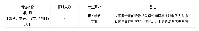 ?。?)熱愛特殊教育事業(yè),具有教師任職的基本素質(zhì);具有良好的品行和正常履行職責(zé)的身體條件;