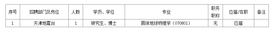 為加強(qiáng)天津市地震局專業(yè)技術(shù)隊(duì)伍建設(shè),進(jìn)一步增強(qiáng)服務(wù)天津經(jīng)濟(jì)社會(huì)發(fā)展的能力,根據(jù)《事業(yè)單位人事管理?xiàng)l例》《事業(yè)單位公開(kāi)招聘人員暫行規(guī)定》《中國(guó)地震局進(jìn)人管理辦法》和《天津市地震局公開(kāi)招聘事業(yè)單位人員辦法(試行)》等有關(guān)規(guī)定,現(xiàn)面向社會(huì)公開(kāi)招聘事業(yè)單位工作人員,有關(guān)事項(xiàng)公告如下: