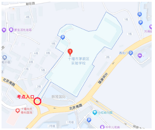 考點入口:北京南路十堰市茅箭區(qū)實驗學(xué)校正門;