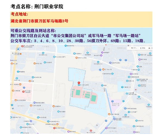 考點地址:荊門市掇刀區(qū)軍馬場路3號