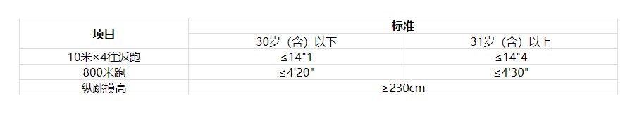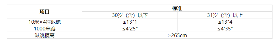 體能測(cè)評(píng)只判定是否合格,不計(jì)入總成績(jī)。體能測(cè)評(píng)合格人員進(jìn)入面試環(huán)節(jié)。