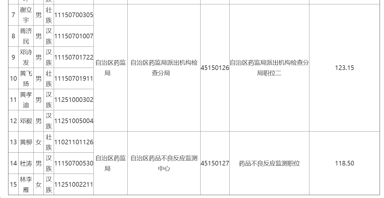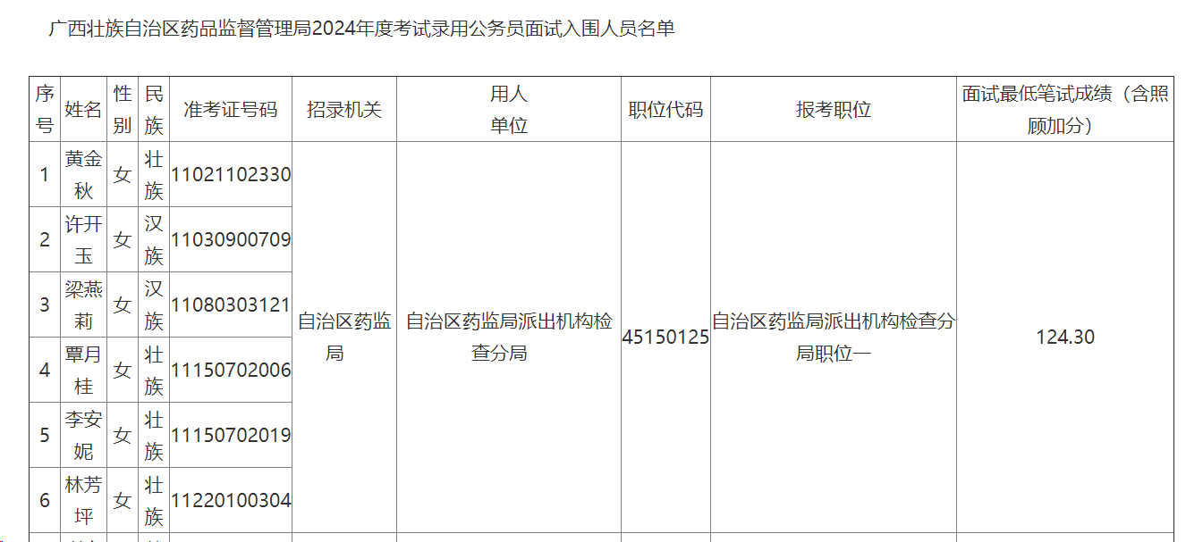 附件:1.廣西壯族自治區(qū)藥品監(jiān)督管理局2024年度考試錄用公務(wù)員面試入圍人員名單