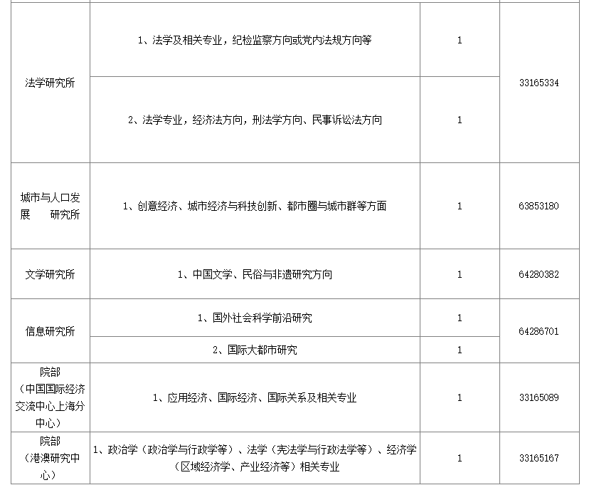 上海社會(huì)科學(xué)院工作人員公開招聘公告