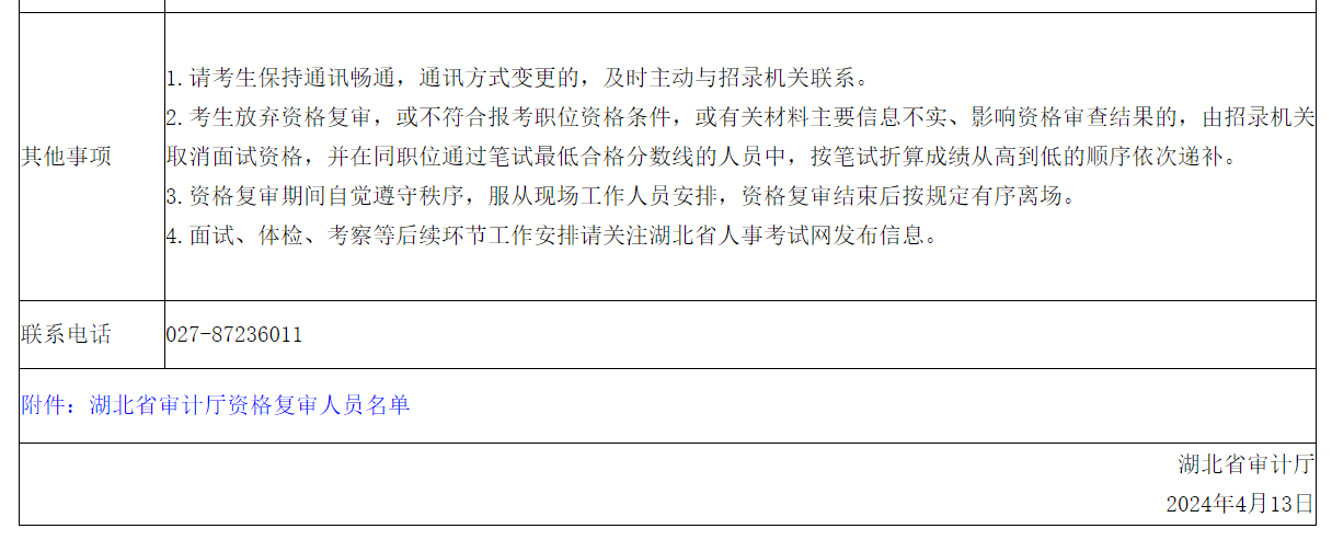 附件:湖北省審計廳資格復審人員名單