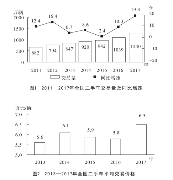D.2011~2017年,全國二手車交易量同比增速低于10%的年份有4個