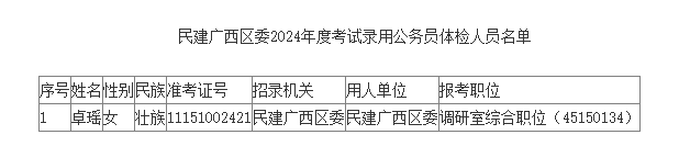 民建廣西區(qū)委2024年度考試錄用公務(wù)員體檢公告