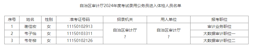 附件:1.自治區(qū)審計(jì)廳2024年度考試錄用公務(wù)員進(jìn)入體檢人員名單