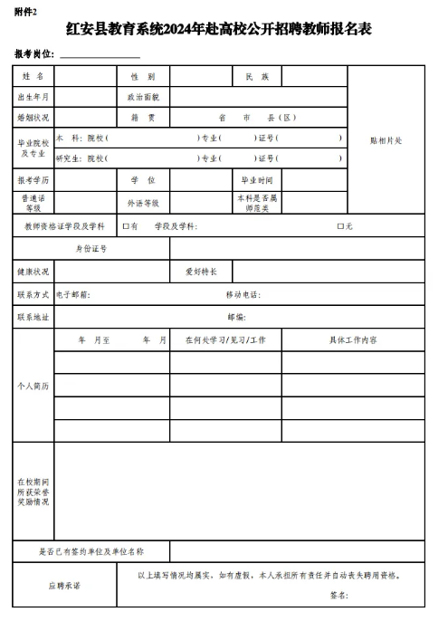 2.紅安縣教育系統(tǒng)2024年赴高校公開招聘教師報(bào)名表