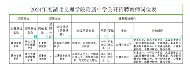 根據(jù)《事業(yè)單位人事管理條例》(國務(wù)院令652號)、《事業(yè)單位公開招聘人員暫行規(guī)定》(原人事部令第6號)、《關(guān)于下達2024年度市直事業(yè)單位增人用編計劃的通知》(襄機編辦〔2024〕2號)以及市人社局對2024年事業(yè)單位公開招聘工作指導(dǎo)意見和《2024年襄陽市第二中學等九所學校公開招聘教師實施方案》,襄陽市教育局組織市二中等九所學校公開招聘42名教師(公開招聘計劃32個,高層次人才計劃10個)。其中,湖北文理學院附屬中學公開招聘高中物理教師1名、高中政治教師1名?,F(xiàn)將有關(guān)事項公告如下: