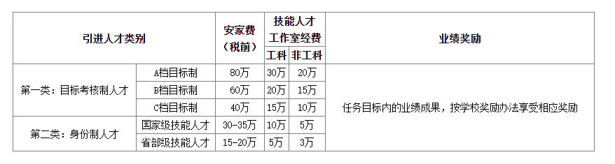 5.年齡要求:第一類A、B檔目標(biāo)考核制人才一般不超過50周歲,C檔目標(biāo)考核制人才一般不超過45周歲;第二類國家級技術(shù)技能人才一般不超過50周歲,省部級技術(shù)技能人才一般不超過45周歲。