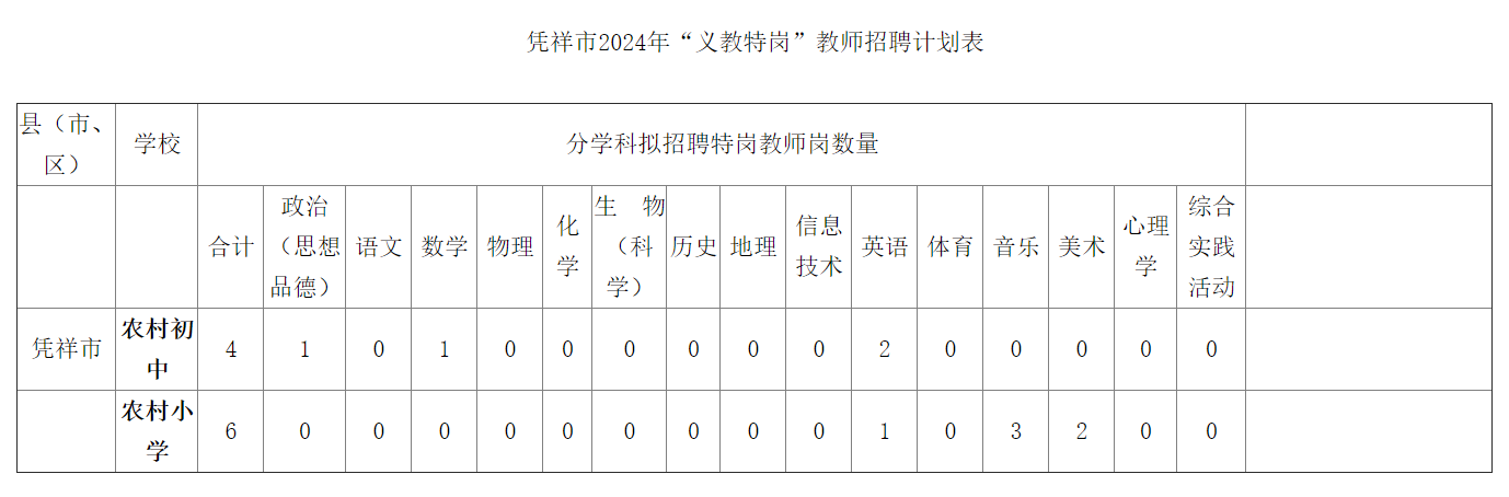 附件:憑祥市2024年 “義教特崗”教師招聘計(jì)劃表