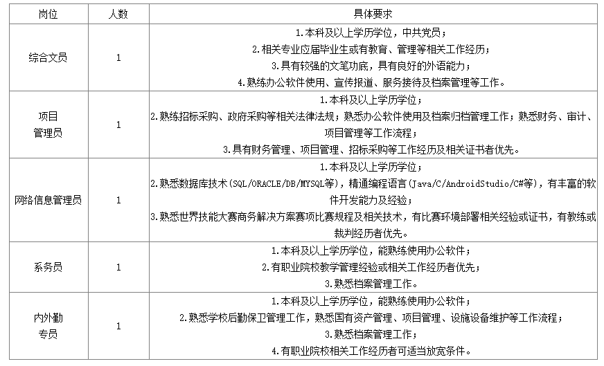 上海市經(jīng)濟管理學(xué)校是1985年經(jīng)上海市人民政府批準成立的全日制中等專業(yè)學(xué)校,直屬上海市教委,由上海第二工業(yè)大學(xué)管理。學(xué)校是國家級重點中專、全國國防教育示范校、世界技能大賽項目集訓(xùn)基地、全國職業(yè)院校數(shù)字校園實驗學(xué)校、上海市中本中高職全貫通學(xué)校、上海“攀登”計劃黨建示范校、上海市優(yōu)質(zhì)中職培育學(xué)校、上海市促進就業(yè)先進集體、首批上海市中等職業(yè)教育改革發(fā)展特色示范校、首批上海市文明校園、首批上海市信息化應(yīng)用標桿校、首批上海市示范性虛擬仿真實訓(xùn)室建設(shè)單位、上海市文明單位、上海市中小學(xué)行為規(guī)范示范校、上海市安全文明校園、上海市依法治校示范校、上海市家庭教育示范校、上海市科技教育特色示范學(xué)校。因?qū)W校發(fā)展需要,根據(jù)《上海市事業(yè)單位公開招聘人員辦法》(滬人社規(guī)〔2019〕15號)規(guī)定,按照公開、平等、競爭、擇優(yōu)的原則,現(xiàn)面向社會公開招聘工作人員15名。公告如下: