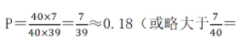 第二步,先讓小張隨機(jī)入座,有40個(gè)座位可選;小李坐在同一排的選擇有7種,隨機(jī)入座的選擇有39種,因此他們坐在同一排的概率為