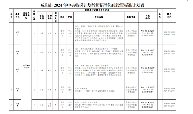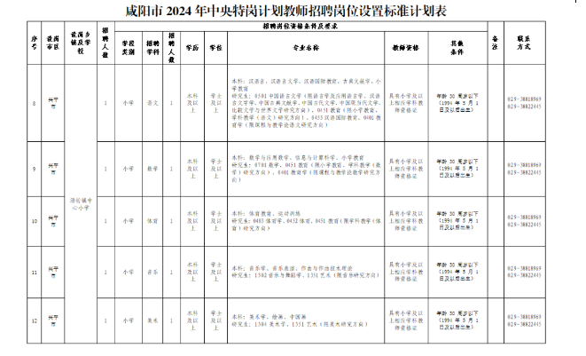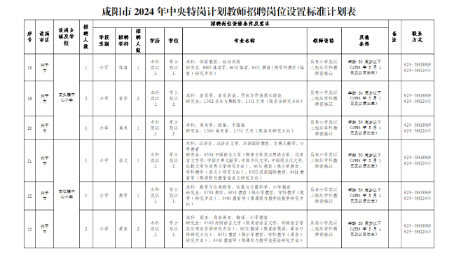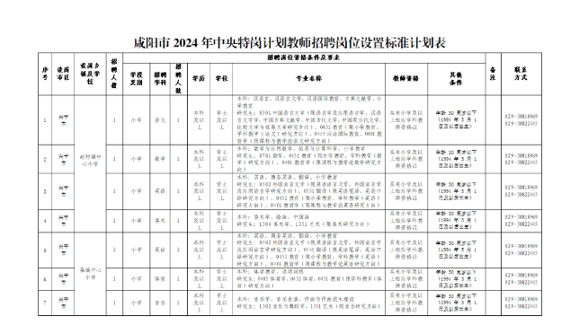 ?。ㄒ唬┕夹枨蟆?月13日前,向咸陽市特崗辦報送2024年招聘計劃、特崗教師崗位設(shè)置標(biāo)準(zhǔn)及公開招聘辦法等。6月18日起,在陜西省教育廳門戶網(wǎng)站(網(wǎng)址:http://jyt.shaanxi.gov.cn/)等平臺發(fā)布招聘信息。