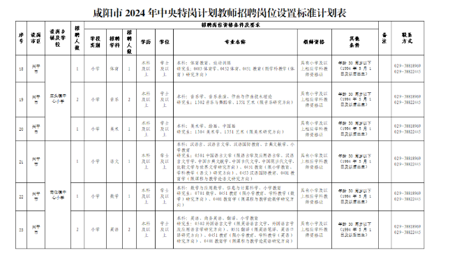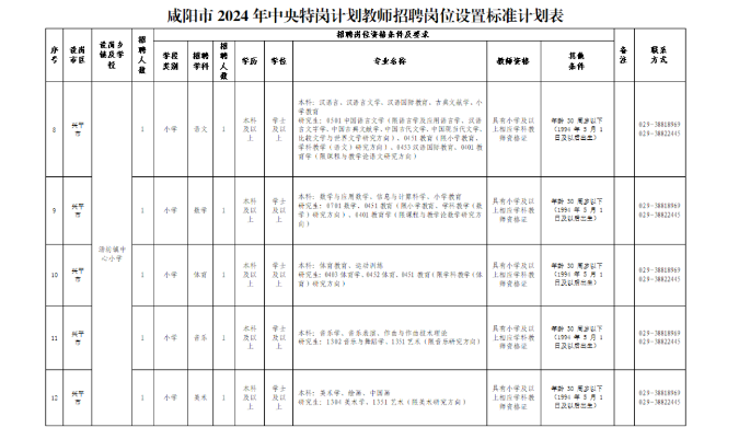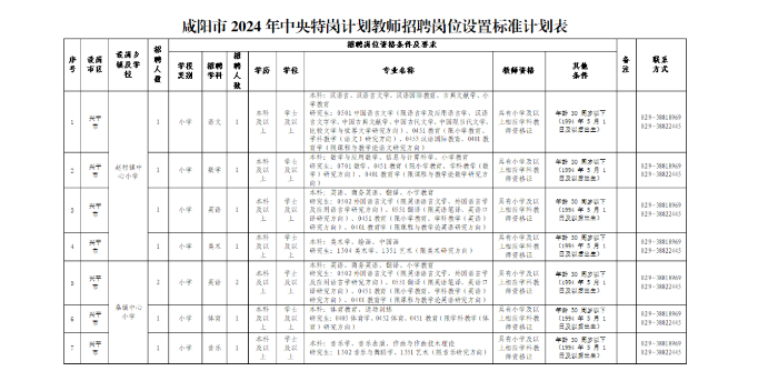 ?。ㄒ唬┕夹枨?。6月13日前,向咸陽市特崗辦報(bào)送2024年招聘計(jì)劃、特崗教師崗位設(shè)置標(biāo)準(zhǔn)及公開招聘辦法等。6月18日起,在陜西省教育廳門戶網(wǎng)站(網(wǎng)址:http://jyt.shaanxi.gov.cn/)等平臺發(fā)布招聘信息。