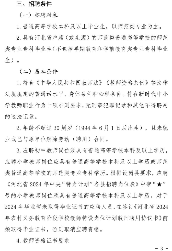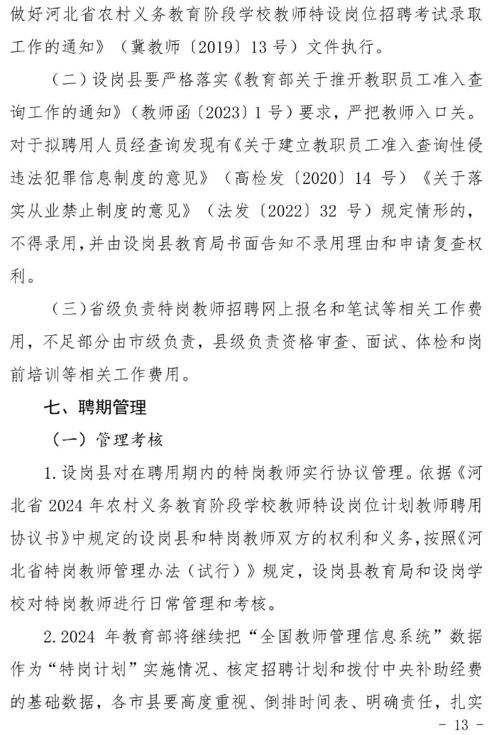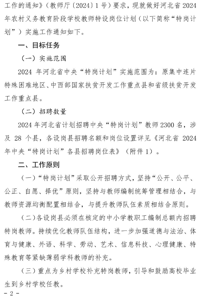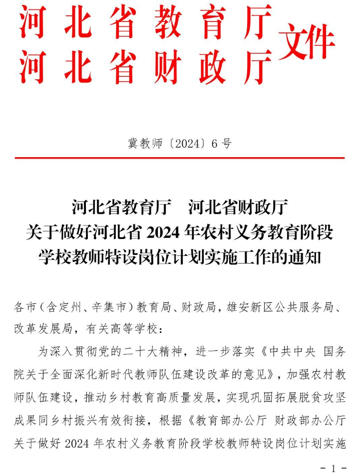 關(guān)于做好河北省2024年農(nóng)村義務(wù)教育階段學(xué)校教師特設(shè)崗位計劃實施工作的通知