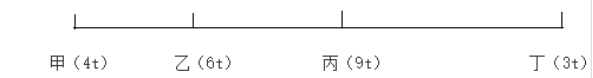 2.某個(gè)公司在甲、乙、丙、丁四個(gè)地方各有一個(gè)倉庫,四個(gè)地方大致都在一條直線上,之間分別相距6km、10km、18km,甲倉庫有貨物4噸,乙倉庫有貨物6噸,丙倉庫有貨物9噸,丁倉庫有貨物3噸。如果把所有的貨物集中到一個(gè)倉庫,每噸貨物每千米運(yùn)費(fèi)是100元,請問把貨物放在哪個(gè)倉庫最省錢( )?