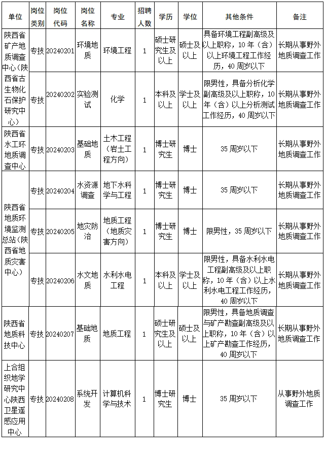 陜西省地質(zhì)調(diào)查院2024年公開招聘高層次專業(yè)技術人才公告