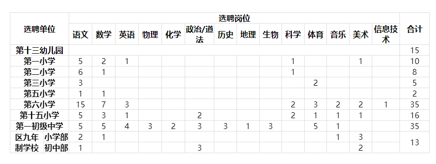 城區(qū)共選聘教師139名,其中幼兒園15名、小學(xué)83名、初中41名。