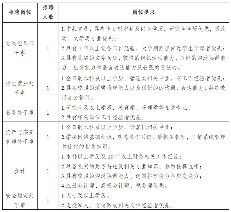 因?qū)W院快速發(fā)展,現(xiàn)公開(kāi)招聘以下崗位。