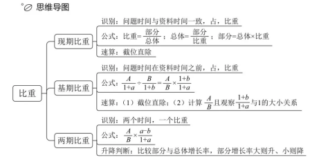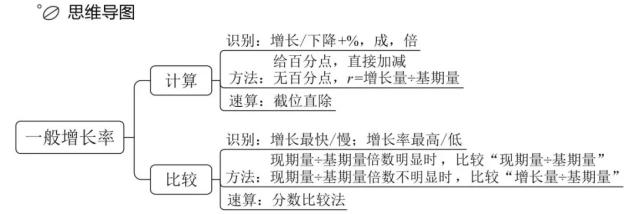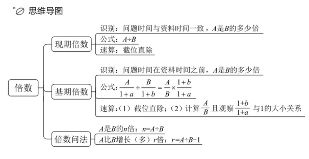 (A:分子現(xiàn)期量(部分);B:分母現(xiàn)期量(總體);a:分子增長率;b:分母增長率);速算:先截位直除A/B,一步除法,根據(jù)選項(xiàng)只截分母;再看1+b/1+a與1的大小關(guān)系,結(jié)合選項(xiàng)選擇答案。