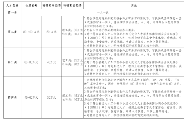 各類高層次人才除享受按國家有關規(guī)定提供的工資、保險、福利待遇外,學校還提供如下待遇: