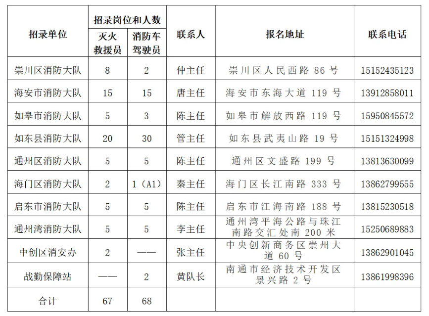 為滿足社會發(fā)展對消防救援力量的需求,根據(jù)南通市各縣(市、區(qū))滅火救援工作實際需要,現(xiàn)面向社會公開招錄政府專職消防隊員135名。具體公告如下: