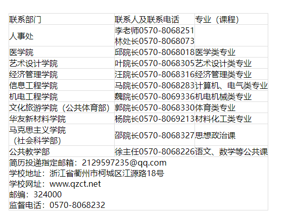 (二)應聘人員對本公告或在指定網(wǎng)站公布的相關(guān)信息有異議的,可在公布之日起5日內(nèi)向衢州職業(yè)技術(shù)學院人事處反映,以便及時研究處理。