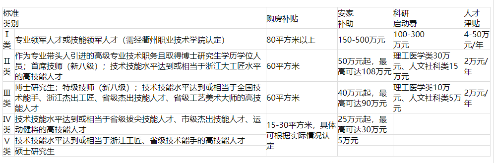 2.招聘對象按規(guī)定符合衢州市和衢州職業(yè)技術(shù)學院高層次緊缺人才引進相關(guān)待遇(購房補貼、安家補助、科研啟動費、人才津貼等)的,學校根據(jù)人才類別按規(guī)定幫助其申請市購房補貼、人才津貼,并發(fā)放學校安家補助等,具體標準如下: