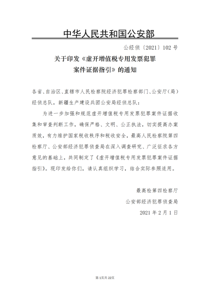 實務(wù)收藏|公經(jīng)偵〔2021〕102號:《虛開增值稅專用發(fā)票犯罪案件證據(jù)指引》