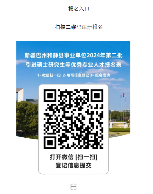 ?。ㄒ唬﹫?bào)名。報(bào)名時(shí)間自發(fā)布公告之日起至10月31日,采取網(wǎng)上報(bào)名的方式進(jìn)行。具體方法可掃描二維碼(見(jiàn)報(bào)名入口)填報(bào),每人僅限填報(bào)一個(gè)崗位,報(bào)名人員須按照畢業(yè)證專業(yè)名稱,對(duì)照國(guó)家教育行政部門(mén)發(fā)布的最新版高等教育學(xué)科專業(yè)目錄鏈接(附件2),選擇符合自身學(xué)歷、專業(yè)條件的崗位報(bào)名。因填報(bào)信息虛假、錯(cuò)誤理解引進(jìn)條件等原因造成的后果由報(bào)名人員自行承擔(dān)。