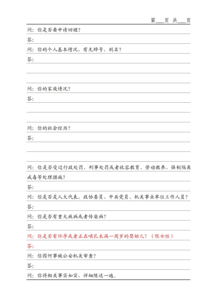 【個人情況】實(shí)務(wù)中,對于筆錄頭已載明“被訊問人姓名、性別等”相關(guān)事項(xiàng)時應(yīng)否在訊問中再次問明個人情況頗有爭議。有不少辦案人員遺漏此問,但有觀點(diǎn)認(rèn)為“載明≠問明”,因此建議在訊問過程中仍需再次核對被訊問人相關(guān)基本信息,包括有無別名、化名、綽號等。