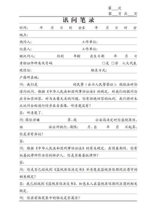 【實(shí)質(zhì)訊問】監(jiān)視居住期間不應(yīng)中斷對案件的偵查,實(shí)務(wù)中,常見監(jiān)視居住傳訊筆錄流于形式,未針對被監(jiān)視居住人有無違反監(jiān)居規(guī)定、罪行輕重、從重從寬等開展實(shí)質(zhì)性訊問,應(yīng)注意自行糾正。