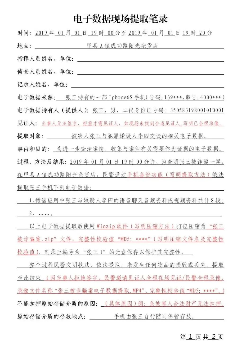 《電子數(shù)據(jù)現(xiàn)場(chǎng)提取筆錄》模板及制用說明