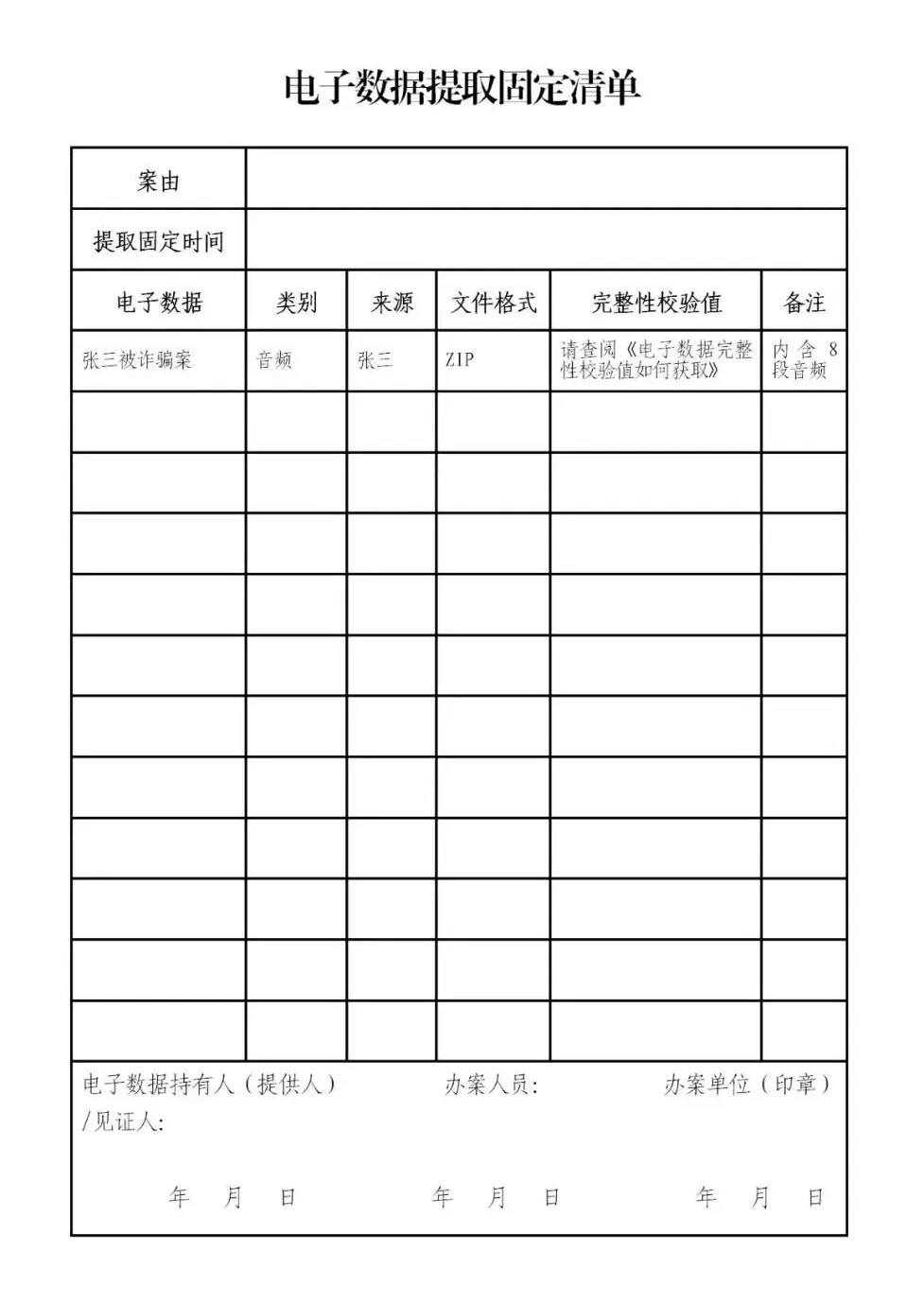 部發(fā)文書《電子數(shù)據(jù)現(xiàn)場(chǎng)提取筆錄/固定清單》填寫示例