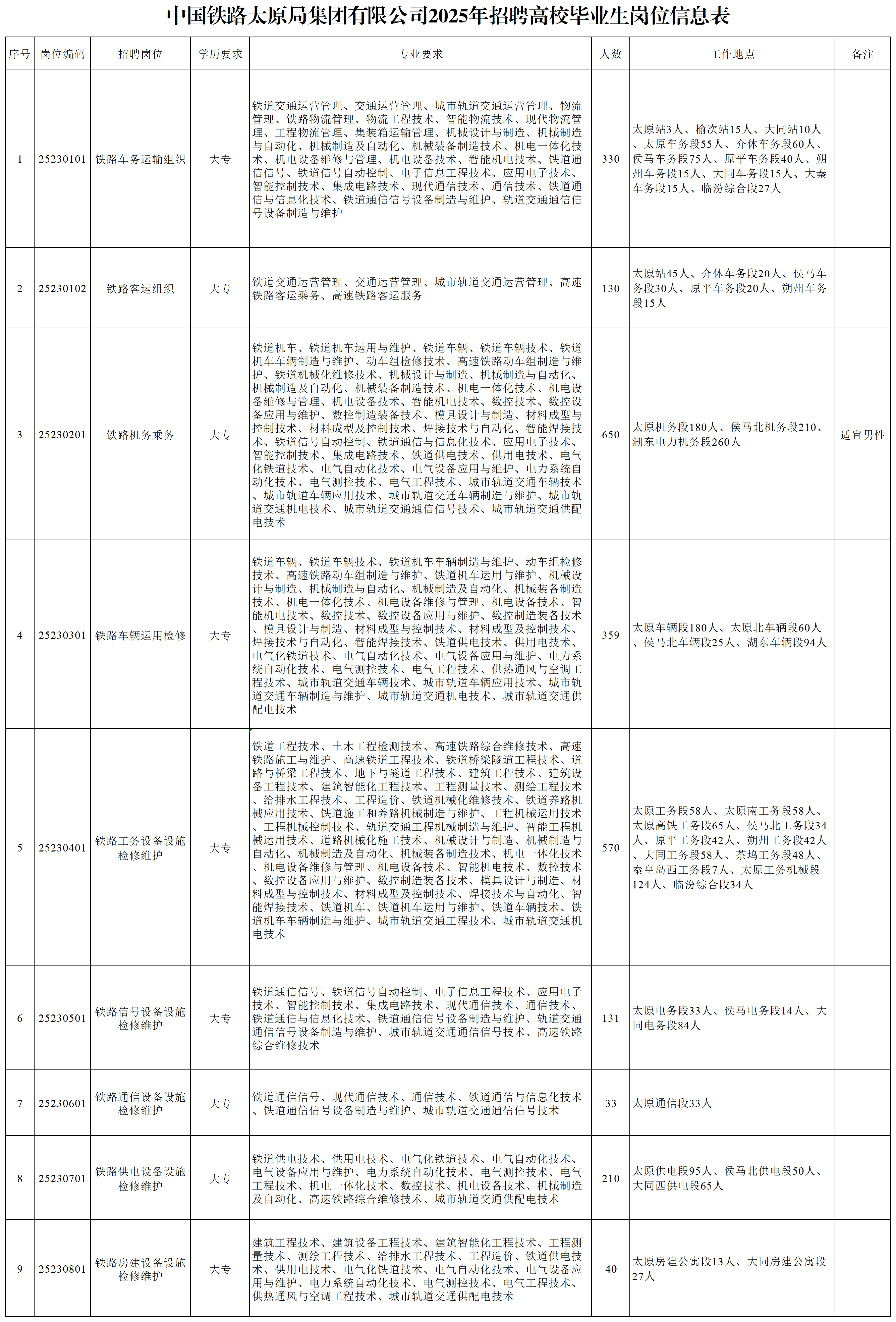 中國鐵路太原局集團有限公司2025年招聘高校畢業(yè)生公告(二)