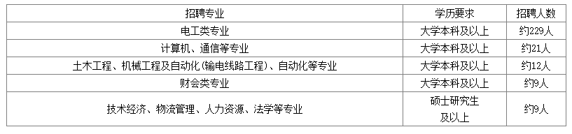 2.招聘崗位:規(guī)劃、建設(shè)、運(yùn)行、運(yùn)維檢修、營銷、信息通信、物資和培訓(xùn)教育等專業(yè)一線崗位。