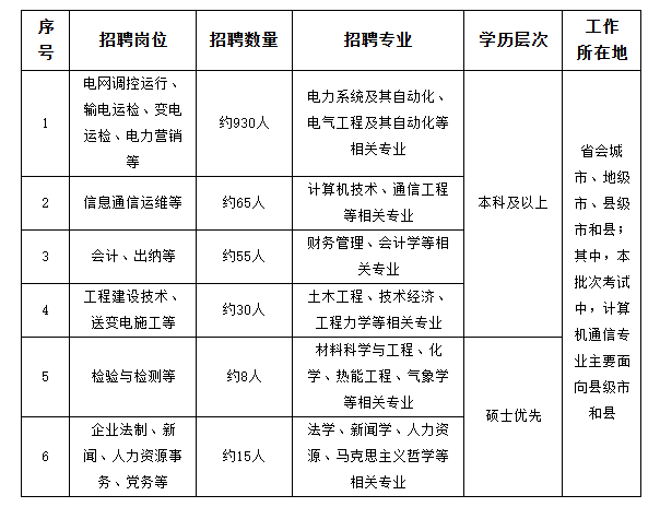 說明:招聘專業(yè)均指主修專業(yè),不包含輔修專業(yè)及第二學(xué)位。最終招聘數(shù)量將根據(jù)上級(jí)單位核定情況相應(yīng)調(diào)整。上述招聘數(shù)量含提前批次校園招聘數(shù)量。