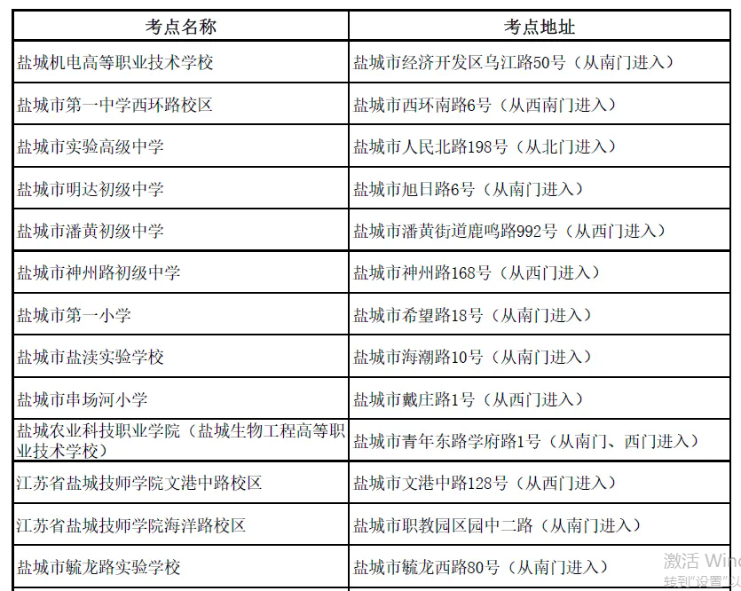 鹽城考區(qū)設(shè)了18個考點,有關(guān)考點方位、公交線路等詳情,可登錄報名網(wǎng)站下載查閱??忌鷳?yīng)仔細(xì)查看準(zhǔn)考證上標(biāo)注的考點名稱、地址、考場號、座位號,以及考點入口等信息。