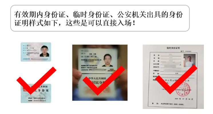 考生憑紙質(zhì)準(zhǔn)考證、有效居民身份證原件入場考試,過期身份證、戶口簿、駕照、社保卡和電子證件等均不能作為有效身份證件使用??荚嚠?dāng)天開考30分鐘后,遲到考生不得進(jìn)入考場。由于特殊情況未攜帶規(guī)定證件的,需先到考點考務(wù)辦履行有關(guān)手續(xù)后方可入場。