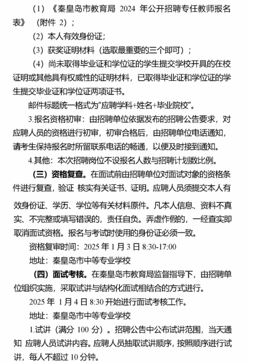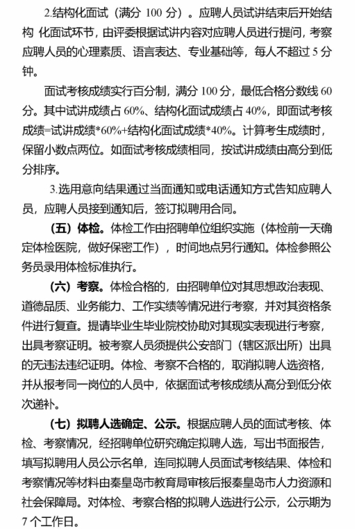 3.秦皇島市教育局2024年公開招聘專任教師面試試講范圍及面試流程
