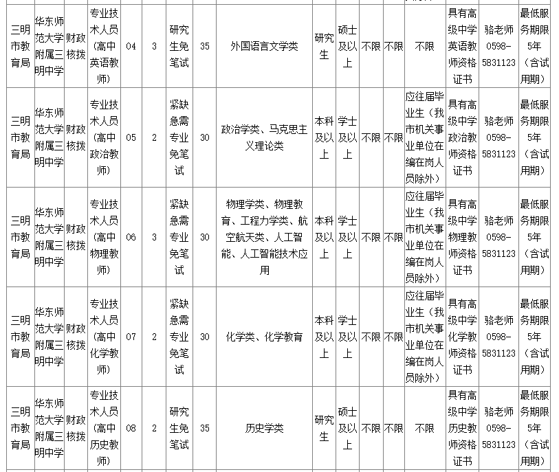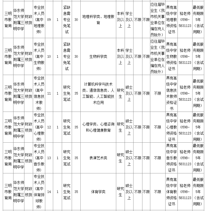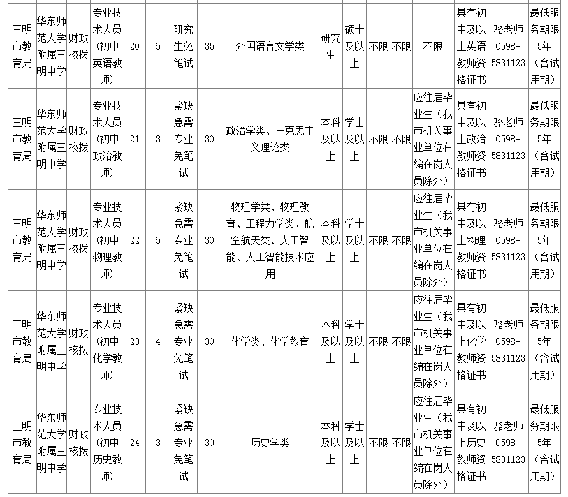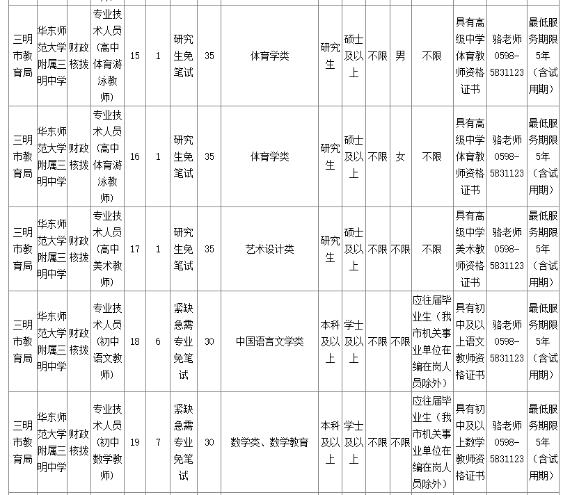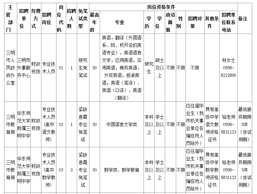 6.三明市機(jī)關(guān)事業(yè)單位在編在崗人員不得報(bào)考“緊缺急需專業(yè)免筆試”崗位;