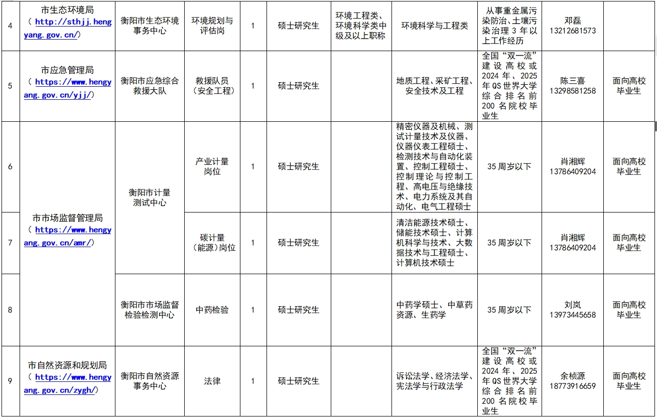 3.碩士研究生年齡40周歲以下(1984年1月15日以后出生),副高級(jí)專業(yè)技術(shù)人員年齡45周歲以下(1979年1月15日以后出生),部分崗位有特殊年齡要求的,以《2025年度衡陽市部分市屬事業(yè)單位急需緊缺專業(yè)技術(shù)人才集中引進(jìn)需求目錄》要求為準(zhǔn)。