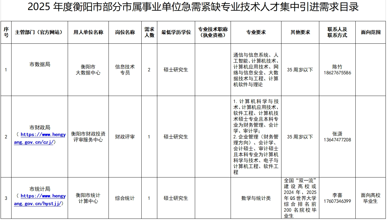 1.2025年度衡陽市部分市屬事業(yè)單位急需緊缺專業(yè)技術(shù)人才集中引進(jìn)需求目錄