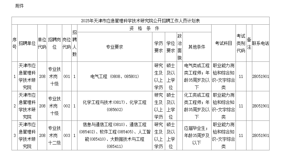 附件:2025年天津市應急管理科學技術(shù)研究院公開招聘工作人員計劃表